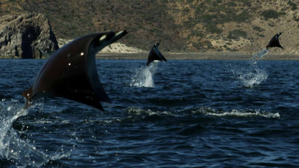 Mobula is a genus of ray in the family Myliobatidae (eagle rays). Their appearance is similar to that of manta rays, which are in the same family. Species of this genera are often collectively referred to as “flying mobula” or simply “flying rays”, due to their propensity for breaching, sometimes in a spectacular manner. The devil fish can attain a disc width of up to 5.2 m (17 ft) and can probably weigh over a ton, second only to the Manta species in size. Despite their size, little is known about this genus, much of it being from anecdotal accounts.