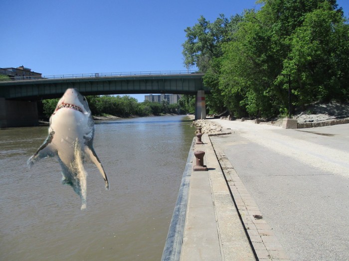 May 16, 1975, near Stephenfield, Manitoba – Three drunk youths were at a party north of Boyne River, when one of them saw a stationary moon-sized red light. After ten minutes, it shone a white searchlight-like beam onto the lake. An underwater object shone below the beam that made the lake bottom visible, then moved towards the shore, creating ripplets. One youth threw a rock at the object, which broke into four, then separated and individually moved “like a conveyor belt” towards the beam of light. The lights in the objects went out, then the hovering object was observed to break in half and the halves moved away from each other in opposite directions. Although they admitted to being drunk, hallucination seemed unlikely as they each saw the same event.
