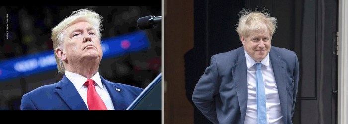 Donald Trumpster with his 1970’s cut and and Brit PM Boris Johnson with his unruly nest.