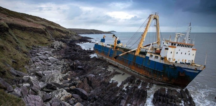 Earlier this week, an abandoned “ghost” cargo ship was discovered washed up off the coast of County Cork, Ireland, following strong winds from Storm Dennis.