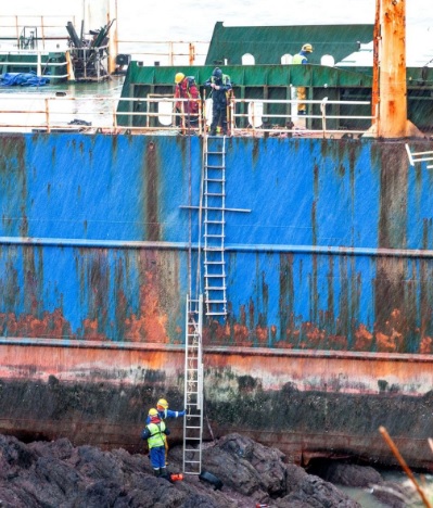 On Tuesday, personnel from Cork County Council could be seen boarding the wreck of the ship, below.