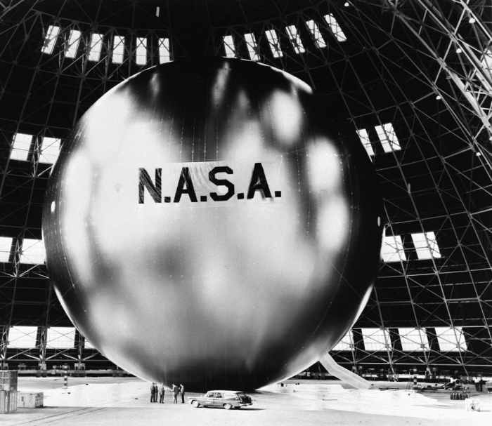 During ground inflation tests, 40,000 pounds (18,000 kg) of air were needed to fill the balloon, but while in orbit, several pounds of gas were all that was required to fill the sphere. At launch, the balloon weighed 156.995 pounds (71.212 kg), including 33.34 pounds (15.12 kg) of sublimating powders of two types. According to NASA, “To keep the sphere inflated in spite of meteorite punctures and skin permeability, a make-up gas system using evaporating liquid or crystals of a subliming solid were incorporated inside the satellite.” One of the powders weighed 10 pounds (4.5 kg), with a very high vapor pressure; the other had a much lower vapor pressure.