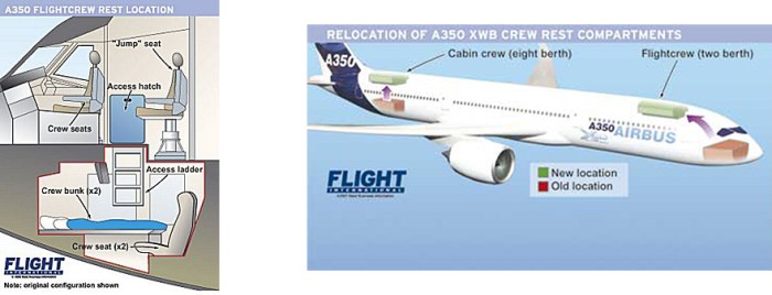 Passengers are restricted from accessing crew rest compartments by regulations, additionally their entrances may be secured by locks and may require ascending a ladder for access.