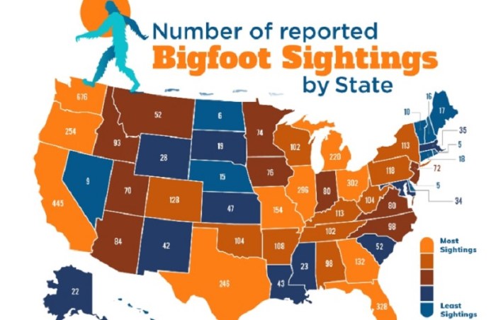 At the bottom of the list, in descending order, were Delaware, Connecticut, Massachusetts, Rhode Island, and, ranked dead last, Nevada. Other noteworthy tidbits from the study were that, by virtue of their sizeable population, California, Florida, Ohio, and Illinois were among the top five states for sightings of Sasquatch overall with Washington topping that list likely due to what one assumes is a fairly healthy number of Bigfoot running around the area. And, oddly enough, the only state not listed is Hawaii, which apparently has not logged any sightings of the legendary cryptid in the database used for the study.