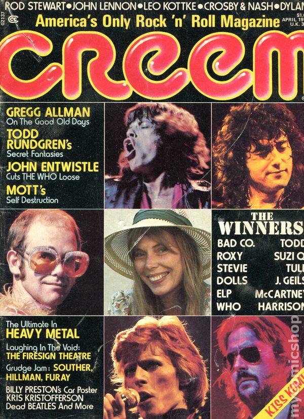 Creem (which is always capitalized in print as ‘CREEM’ despite the magazine’s nameplate appearing in mostly lower case letters), “America’s Only Rock ‘n’ Roll Magazine”, was a monthly rock ‘n’ roll publication first published in March 1969 by Barry Kramer and founding editor Tony Reay. It suspended production in 1989 but attained a short-lived renaissance in the early 1990s as a glossy tabloid. Lester Bangs, often cited as “America’s Greatest Rock Critic”, became editor in 1971. The term “punk rock” was coined in May 1971, in Dave Marsh’s Looney Tunes CREEM column about Question Mark & the Mysterians.