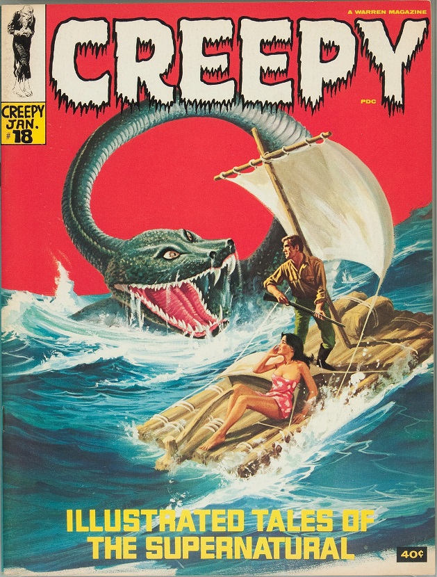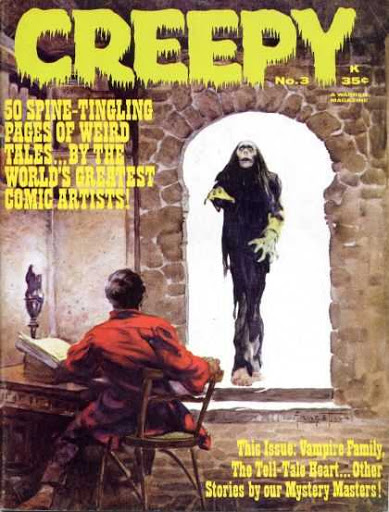 Creepy was an American horror-comics magazine launched by Warren Publishing in 1964. Like Mad, it was a black-and-white newsstand publication in a magazine format and did not carry the seal of the Comics Code Authority. An anthology magazine, it initially was published quarterly but later went bimonthly. Each issue’s stories were introduced by the host character, Uncle Creepy. Its sister publications were Eerie and Vampirella.