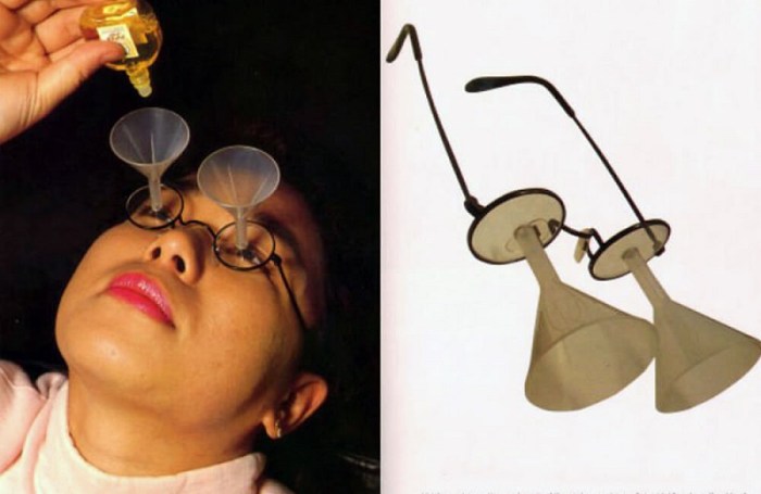 A lot of people can’t put medication in their eyes. Whether that has something to do with a fear of something going in their eyes or they just don’t like it, it’s a big problem. Japanese eyedrop glasses are there to fix the problem. The eyedrop glasses contain a funnel balanced on each of the lenses.