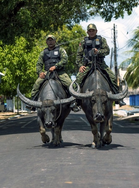 It’s traditional for Marajo’s military police to ride the docile, 1,000-pound creatures, he told Caters News.