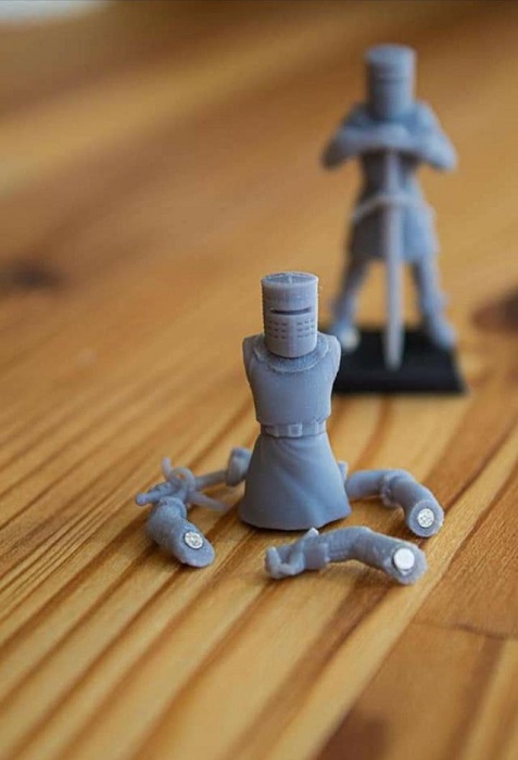 The Black Knight is a fictional character who appears in a scene of the feature film Monty Python and the Holy Grail. As his name suggests, he is a knight dressed in black and behaves similarly to the standard character, a black knight. He guards a “bridge” (in reality a short plank of wood) over a small stream—which could have been easily stepped over by King Arthur but, for unknown reasons, he does not. Although supremely skilled in swordplay, the Black Knight suffers from unchecked overconfidence and a staunch refusal ever to give up.