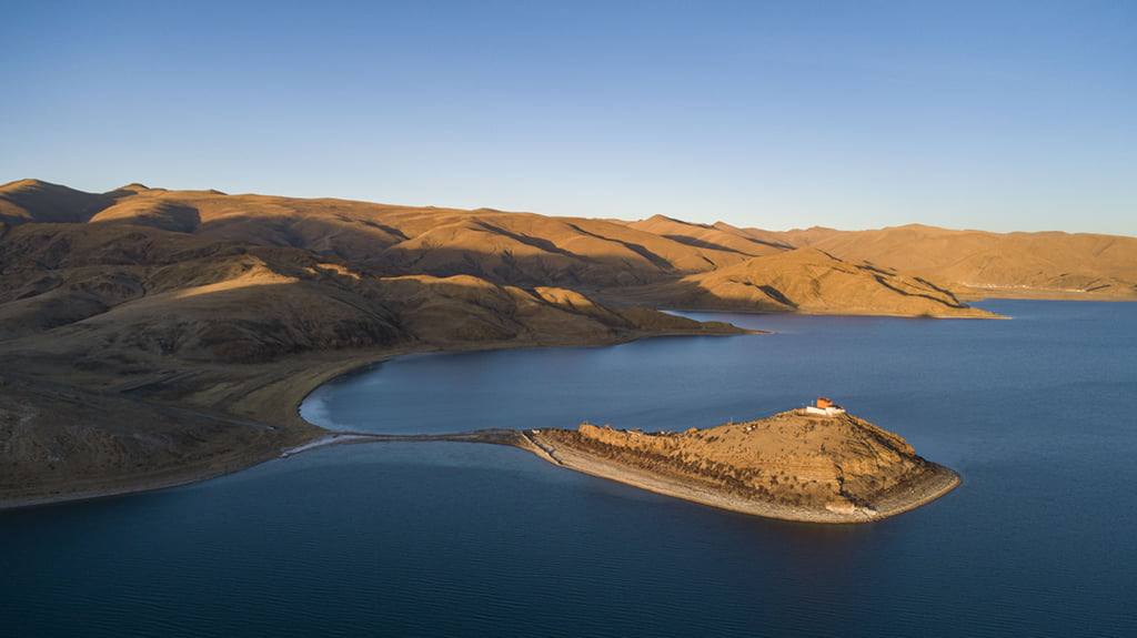 Located on top of a small mound, on a sliver of land stretching into the serene Yamdrok Lake is Rituo Temple, the home of just one solitary monk who spends his days chanting sutras and meditating.