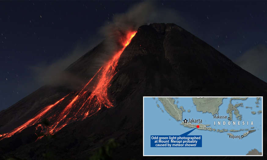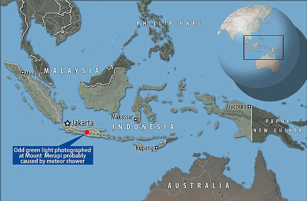 ‘So, from these two data, it can be assumed that the flash of greenish light that appears near Mount Merapi may be related to meteor shower activity,’ LAPAN wrote in a translated version of its website.