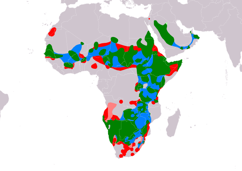 This species is patchily distributed through much of Africa, though it is absent from much of the central and western parts of the continent and declining elsewhere in its range. The lappet-faced vulture breeds in Senegal, Mali, Mauritania, Burkina Faso, Niger, Chad, Sudan, Egypt, Ethiopia, Somalia, Kenya, Tanzania, Uganda, Rwanda, the Democratic Republic of the Congo, Zambia, Malawi, Mozambique, Eswatini, South Africa, Zimbabwe, Botswana and Namibia. On the Arabian Peninsula, it breeds in Yemen, Oman, the United Arab Emirates and Saudi Arabia. It is also present in Gambia, Guinea, Ivory Coast, Benin, the Central African Republic and Angola.