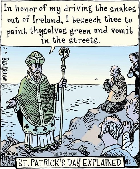 Left: Jack the dog sports his Irish green paint job as he marches in the St. Patrick’s Day parade, March 13, 2005, in Baltimore. Right: an attendee at the St Patrick’s Day Parade in New York on March 17, 2001.