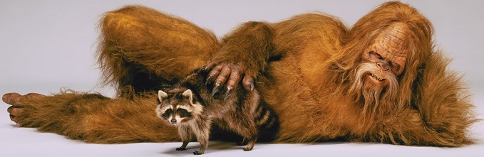 Top; A replica of the Minnesota Iceman is on display at the International Cryptozoology Museum Bookstore on Hammond Street in Bangor; Bottom; Frosty, a large custom made Yeti head, is mounted on a wall; Middle; A book on the mysterious Bigfoot. Credit: Linda Coan O’Kresik / BDN