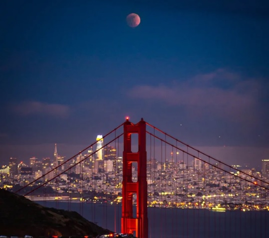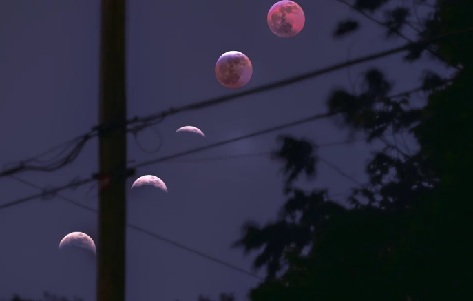 Its hue was created by sunlight being projected through Earth’s atmosphere onto the Moon’s shadowed surface.