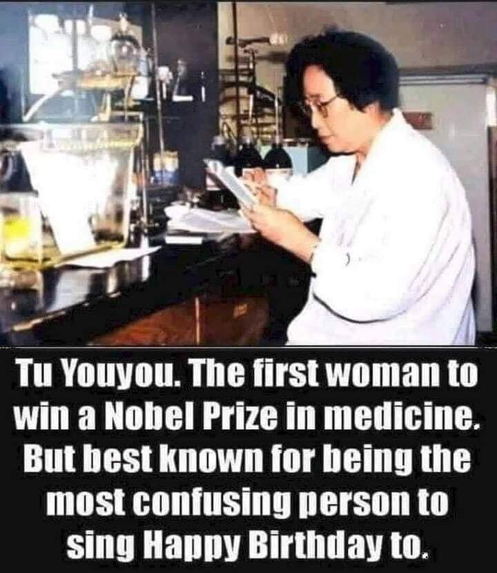 Tu Youyou (Chinese: 屠呦呦; pinyin: Tú Yōuyōu; born 30 December 1930) is a Chinese pharmaceutical chemist and malariologist. She discovered artemisinin (also known as qīnghāosù, 青蒿素) and dihydroartemisinin, used to treat malaria, a breakthrough in twentieth-century tropical medicine, saving millions of lives in South China, Southeast Asia, Africa, and South America.