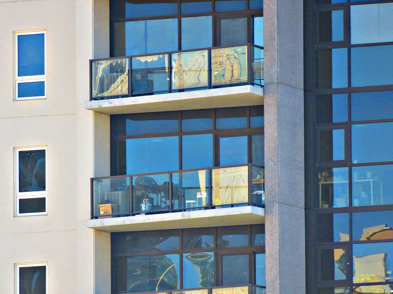 Cool reflections coming off the balcony glass and windows of this building.