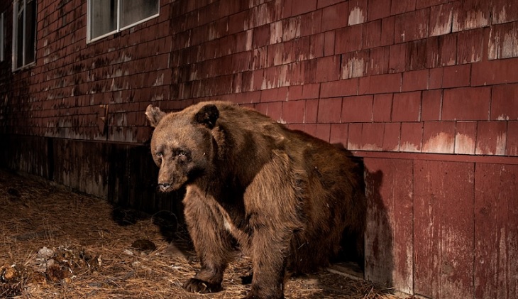 A large black bear leaves its den under a vacant home in South Lake Tahoe, California. As bear populations grow and humans expand into formerly undeveloped areas, more of the bruins are learning to live alongside people.