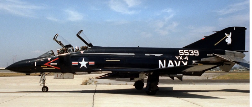 The most notable, and famous, use of the bunny image came from the Navy’s Air Test and Evaluation Squadron Four (VX-4) based out of NAS Point Mugu, CA. This squadron is charged with the operational testing of advanced aircraft systems. In this capacity, the rabbit head adorned the tail of some of the Navy’s most legendary fighter jets including the F-4 Phantom II, F-14 Tomcat, F/A-18 Hornet and the newest F-18 E/F Super Hornet. According to Navy lore the first rabbit appeared on the black F-4 Phantom II in 1969 during night testing and was referred to either as “Black Bunny” or “Vandy One”.