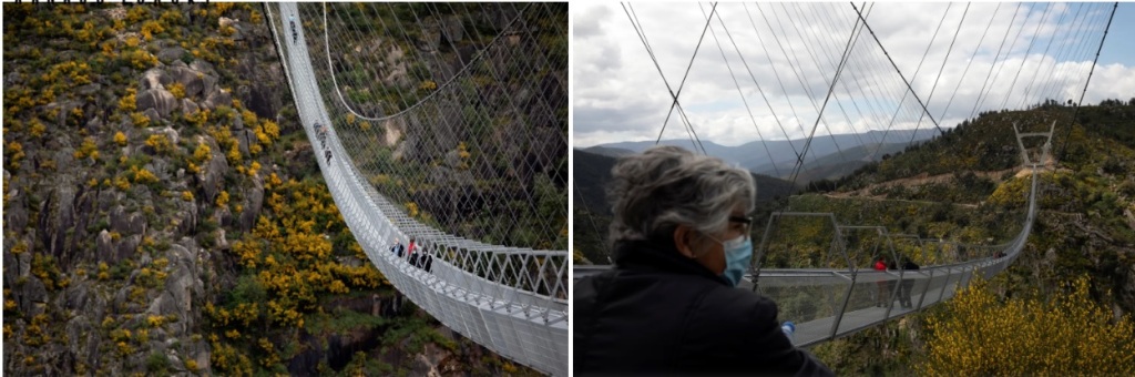 Arouca 516 is a suspension bridge located in the municipality of Arouca, in the North Region and the Aveiro District in Portugal. The bridge has a length of 516 m (1,693 ft). The bridge is suspended 175 m (574 ft) above the Paiva River, which it spans. Its name is a reference to its extension in meters (516) and the municipality where it is located (Arouca).