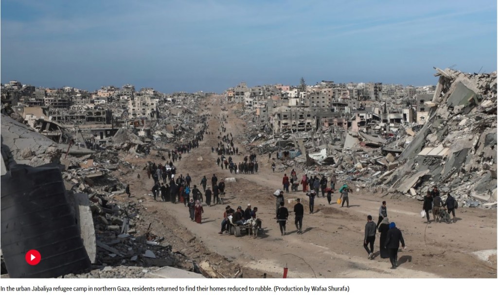 International rights groups. including Amnesty International and Human Rights Watch, view the vast destruction as part of a broader pattern of extermination and genocide directed at Palestinians in Gaza, a charge Israel denies. The groups dispute Israel’s stance that the destruction was a result of military activity.