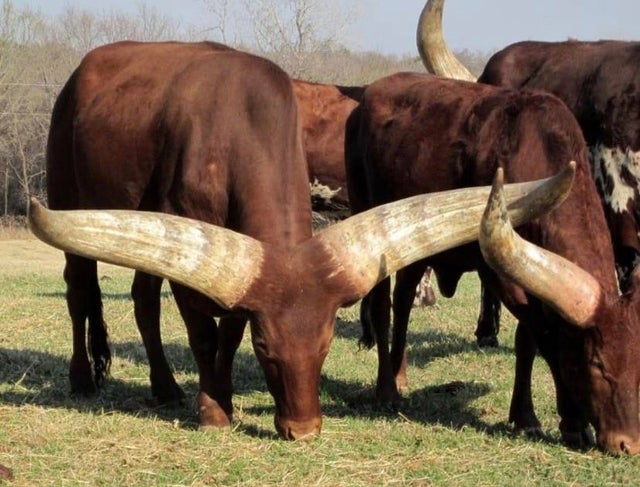 The Ankole is a breed or group of breeds of African cattle, belonging to the broad Sanga cattle grouping of African breeds. It was probably introduced to Uganda between five and seven hundred years ago by nomadic pastoralists from more northerly parts of the continent. It is distributed in much of eastern and central Africa, particularly in Uganda, the Democratic Republic of the Congo, Rwanda, Burundi and parts of Tanzania. There are at least five distinct regional strains, some of which may be reported as breeds in their own right.