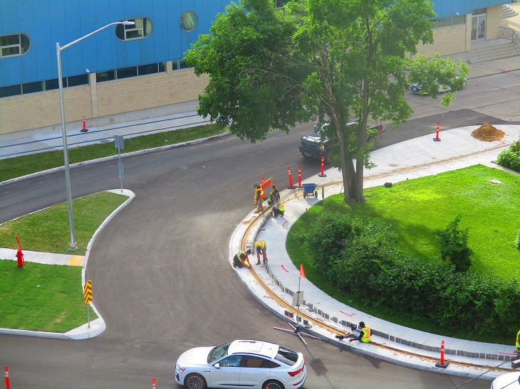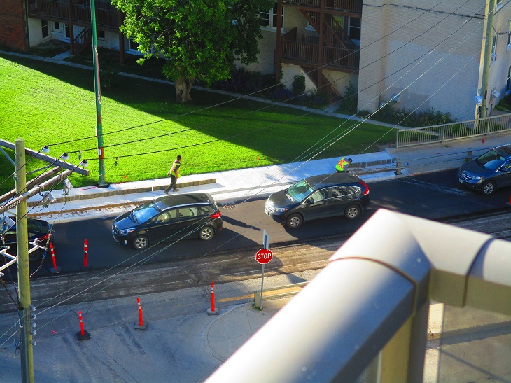 Sidewalk workers enjoying the fresh morning air in Winnipeg.