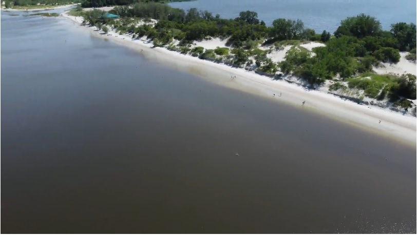 Lake Winnipeg is a shallow lake. At Grand Beach a person can walk out 200 meters no problem. There are also many sand bars that rise above the surface.