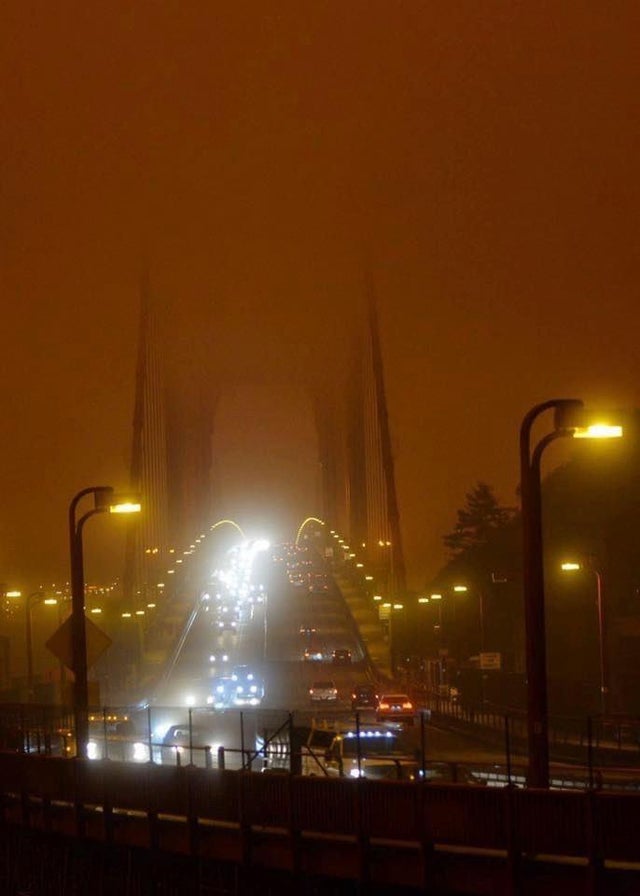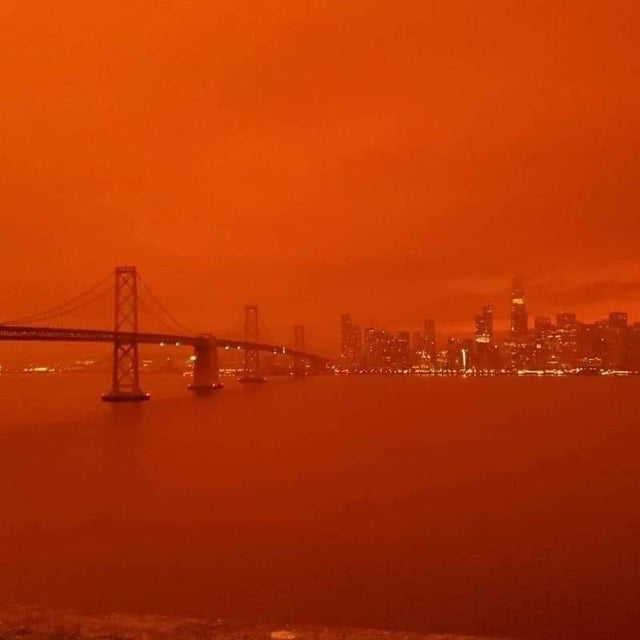 Smoke from the numerous wildfires in northern California has caused a red haze over the Bay area.