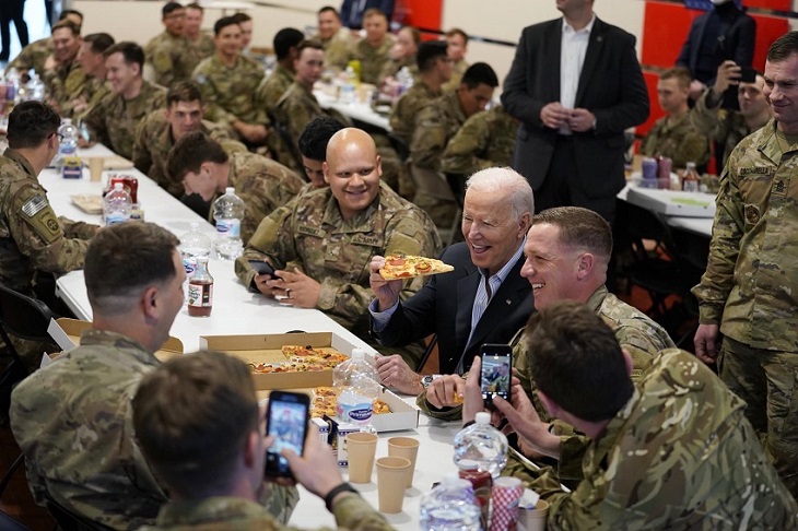 Joe Biden meeting with U.S. paratroopers in Europe last week.