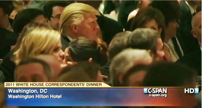 Fast backward to the Correspondents Dinner in 2011. Trump was at this dinner, he hasn’t gone as president, scared to get roasted by comedians, chickenshit. Obama took a swipe at Trump during his routine. Watch as Trump is just seething at his table. Trump has hated Obama ever since, even though it was all in good fun. But Trumpster is one of the most spiteful, mean, unpleasant grudge holders that I have ever watched. If you make fun of him, he will never let it go, and in the evil recesses of his dark mind he actually wants to kill you.