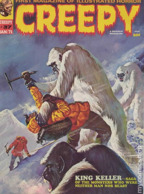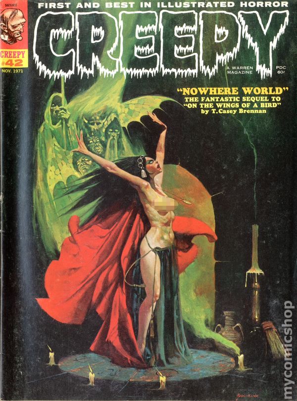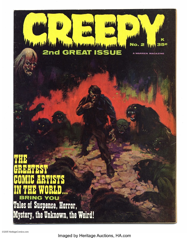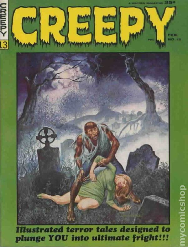 Creepy was an American horror-comics magazine launched by Warren Publishing in 1964. Like Mad, it was a black-and-white newsstand publication in a magazine format and did not carry the seal of the Comics Code Authority. An anthology magazine, it initially was published quarterly but later went bimonthly. Each issue’s stories were introduced by the host character, Uncle Creepy. Its sister publications were Eerie and Vampirella.