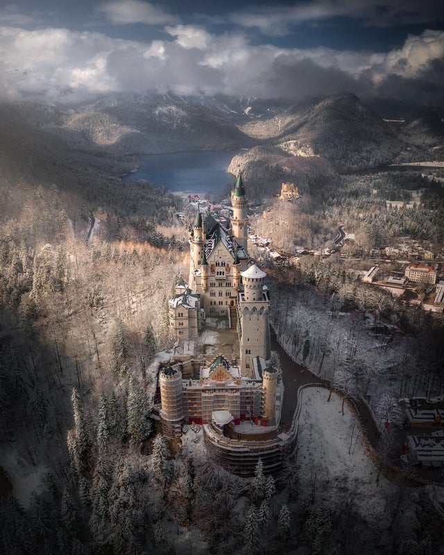 Neuschwanstein Castle is a 19th-century Romanesque Revival palace on a rugged hill above the village of Hohenschwangau near Füssen in southwest Bavaria, Germany. The palace was commissioned by King Ludwig II of Bavaria as a retreat and in honour of Richard Wagner. Ludwig paid for the palace out of his personal fortune and by means of extensive borrowing, rather than Bavarian public funds.