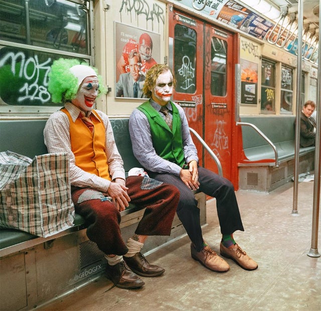 Photoshopped Heath’s Joker next to Joaquin’s Joker